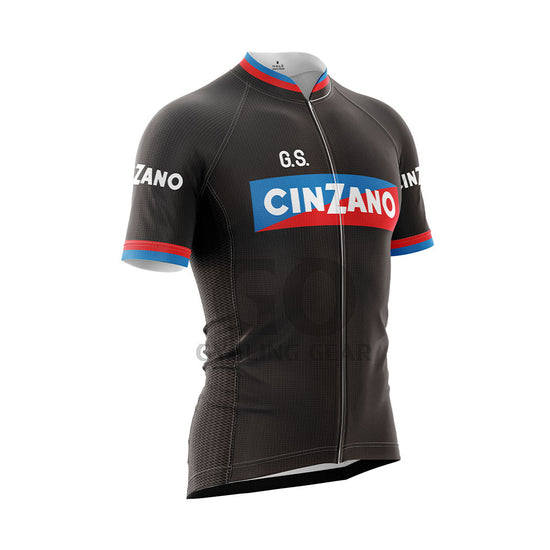 Team Cinzano was originally an Italian based European professional bicycle road racing team during the 1970's and early 80's. The name Cinzano, pronounced "Chinzano", is named after the Italian wine and vermouth producer. Cinzano gained cycling notoriety and fame in the critically acclaimed movie Breaking Away. In this movie Team Cinzano was the famous pro team that captured the movie's hero Dave Stoler's heart We have black white and yellow cinzano cycling jersey