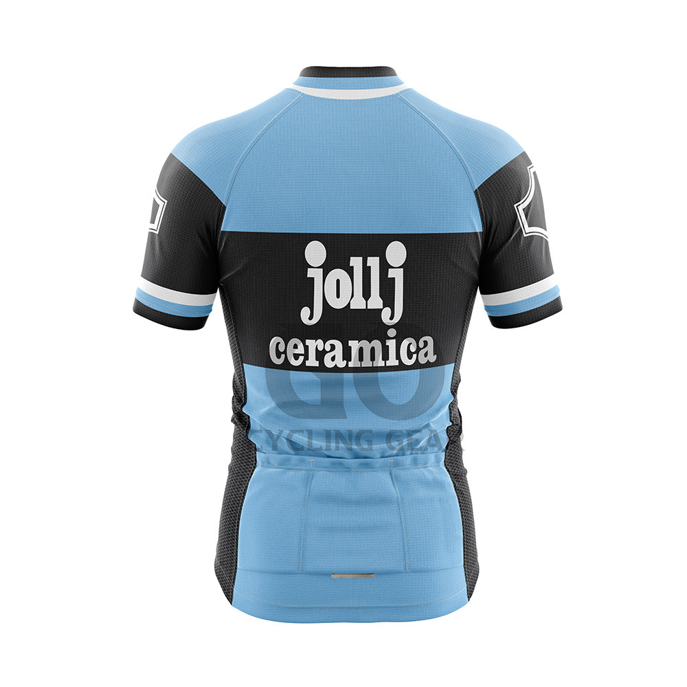 Jollj Ceramica was a team active in the 1970s.It is the jersey of the former Italian team Jollj-Ceramica that won the 1975 Giro d’Italia with Fausto Bertoglio.