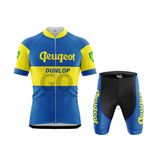 The shirt is a replica of the shirt of the Peugeot-Dunlop team from the early sixties. A historic cycling shirt with the comfort and quality of today.