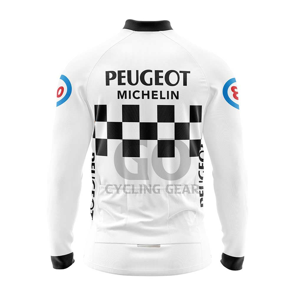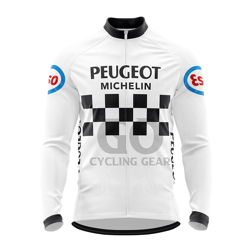 Peugeot Esso Michelin Retro White Long Sleeve Cycling Jersey